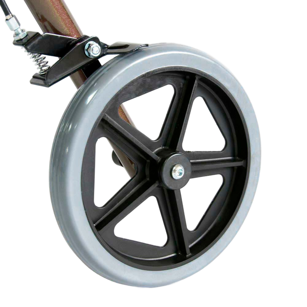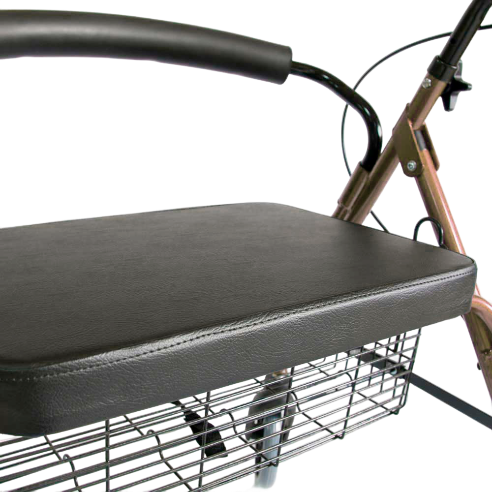 Конструкция выполнена из алюминия с лакокрасочным покрытием, сиденье обшито искусственной кожей. Ролятор оборудован двумя ручными тормозами задних колес c фиксирующей функцией, расположенных на ручках конструкции. Ручки имеют рифленую форму и не скользят в ладонях; регулируются по высоте. Под сиденьем закрепляется вместительная корзина для личных вещей и продуктов. Подножка подвижна и убирается под конструкцию; опору для спины можно отсоединить, а поручни опустить, если ролятор не используется в качестве стула. Ролятор складывается и не занимает много места дома или при транспортировке.