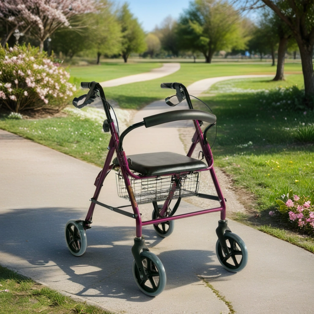 Конструкция выполнена из алюминия с полимерным покрытием, сиденье обшито искусственной кожей. Ролятор оборудован двумя ручными тормозами задних колес c фиксирующей функцией, расположенных на ручках конструкции. Ручки имеют рифленую форму и не скользят в ладонях; регулируются по высоте (6 уровней регулировки). Под сиденьем закрепляется вместительная корзина для личных вещей и продуктов. Опору для спины можно отсоединить, если ролятор не используется в качестве стула. Ролятор складывается и не занимает много места дома или при транспортировке.