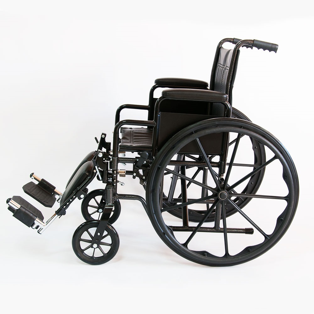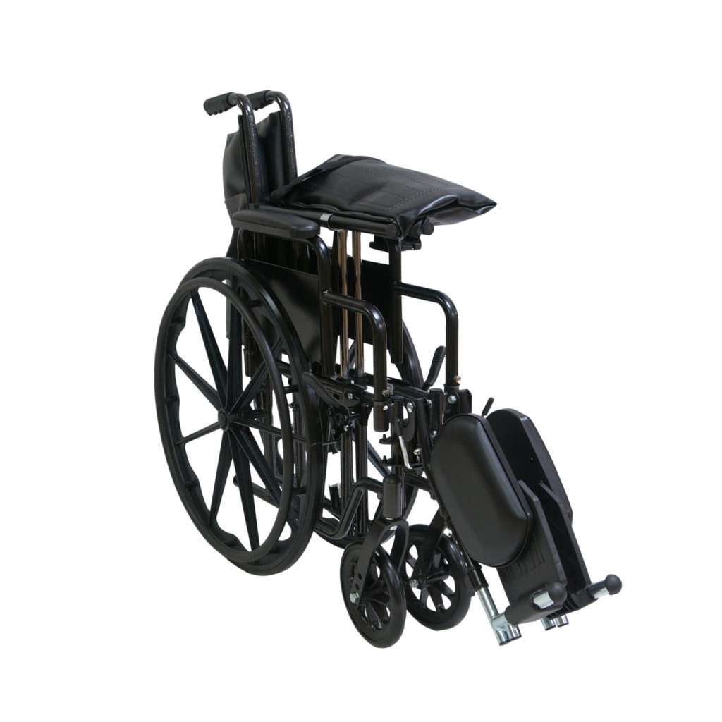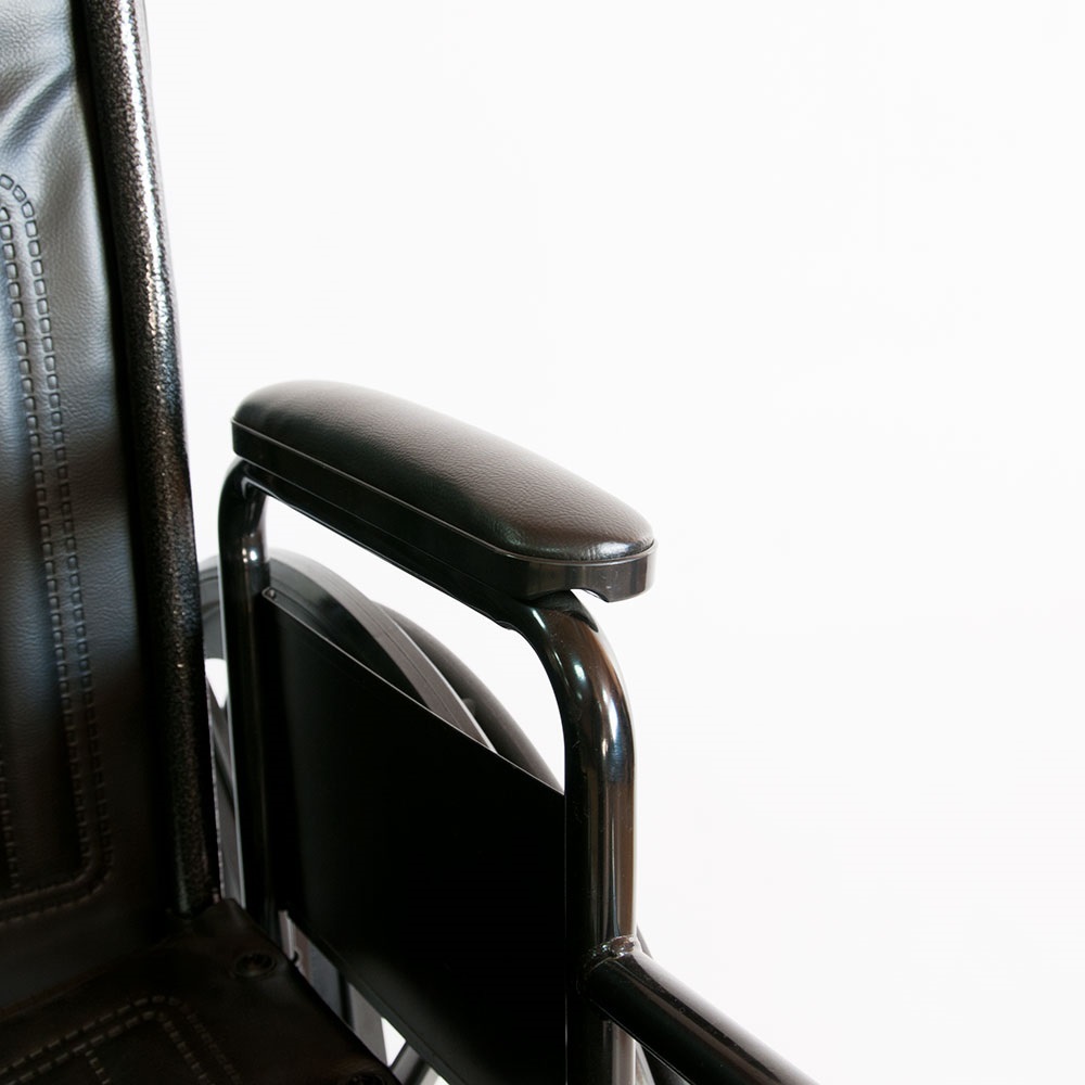 Задние колеса: Цельнолитые, не боятся проколов. Оснащены пластиковым ободом для рук. Регулируются по вертикали в 2-х положениях (шаг 5 см).