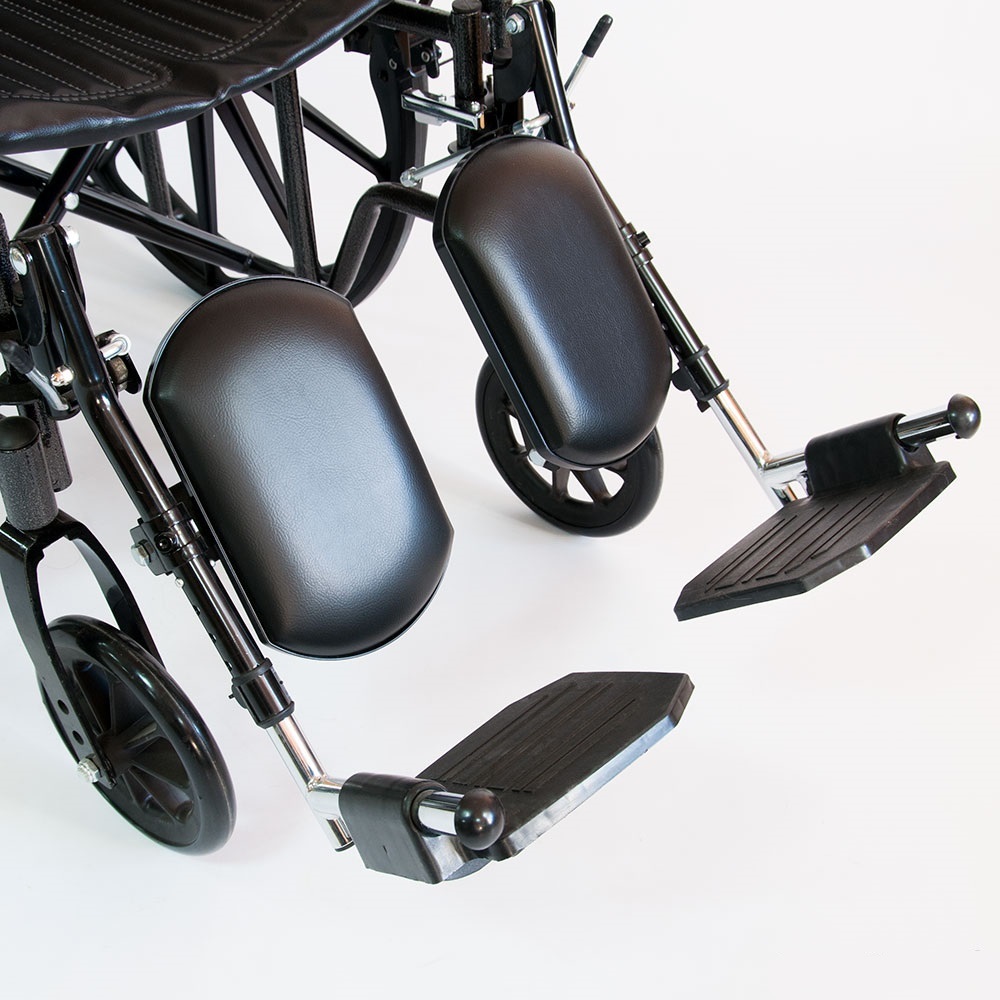 Подножки: Откидные пластиковые опоры для стоп. Сами подножки регулируются по оси и углу наклона. Предусмотрены откидные мягкие упоры для голеней (регулируются по высоте в 4 положениях).
