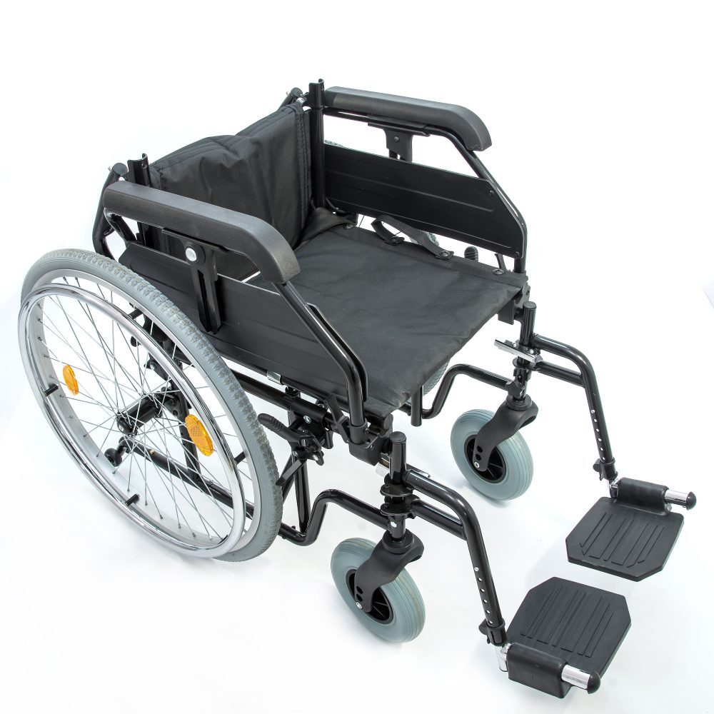 Кресло-коляска инвалидное с ручным приводом предназначена для передвижения больных и инвалидов с частичной потерей функций опорно-двигательного аппарата в условиях помещений и на площадках с твёрдым покрытием как самостоятельно, так и с помощью сопровождающего лица. Кресло-коляска имеет складную поршневую конструкцию по вертикальной оси. Рама коляски стальная с полимерным покрытием.