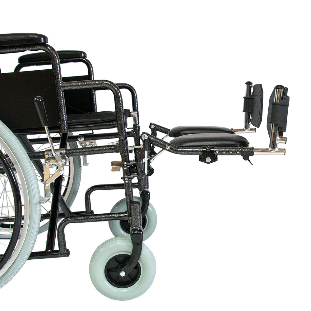 Для установки опор на кресло-коляску необходимо надеть опору на направляющие, находящиеся на раме и повернуть в сторону от ко-леса до срабатывания фиксатора. Модели комплектуются откидными и регулируемыми по высоте подножками.