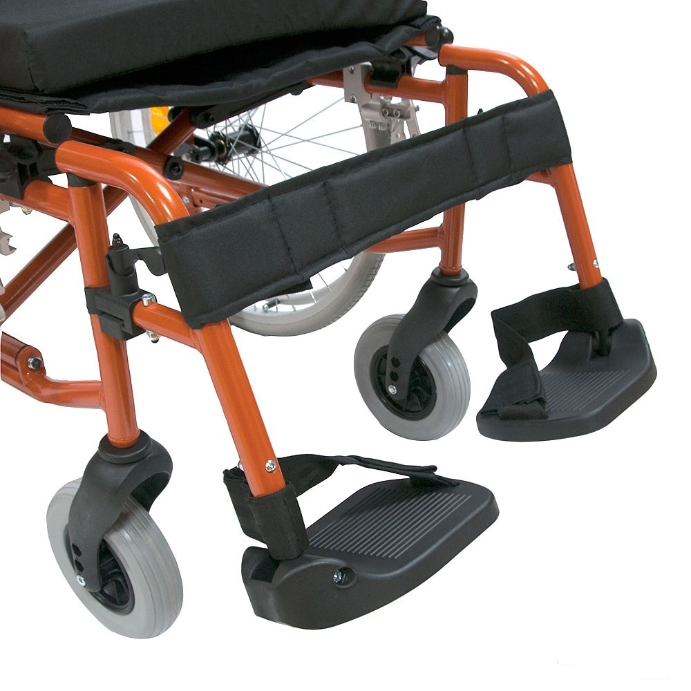 Задние колеса быстросъемные, литые; оборудованы ободами для движения и светоотражателями (катафотами). Оси задних колес регулируются по вертикали и горизонтали. Передние колеса литые. Также коляска оборудована регулирующимися транзитными колесами для проезда через узкие проходы.